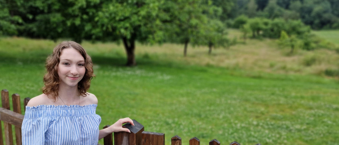 Grüß Gott, ich bin Christiane, die Tochter des Schäfers. Im Moment befindest du dich vor dem Obstgarten. Stell dir vor, in meiner Zeit vor 100 Jahren standen hier einmal über 100 Obstbäume. Darunter Äpfel, Birnen, Zwetschgen und Quitten. Im Frühling liebe ich es, unter den blühenden Bäumen zu spielen. Sie duften immer so süß.