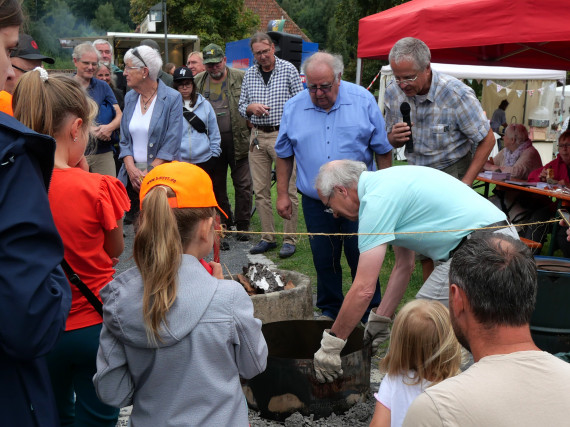 Gleich zweimal konnten wir zum Museumsfest das Pechsieden vorführen. Für viele Besucher war das ein echtes Highlight – die Neugier war groß, denn die meisten kannten zwar den Begriff, aber wie Pech entsteht und wofür es genutzt wird, war für die meisten völlig neu. Unsere Gruppe hat mit viel Engagement Fragen beantwortet und Wissen geteilt. Die Ausbeute an Pech war an beiden Tagen zwar eher bescheiden – vermutlich war das Feuer zu heiß. Doch das tut dem Ganzen keinen Abbruch: Eure Vorführung hat das Museumsfest bereichert und für Begeisterung gesorgt. Ein herzliches Dankeschön an alle, die mitgeholfen haben!