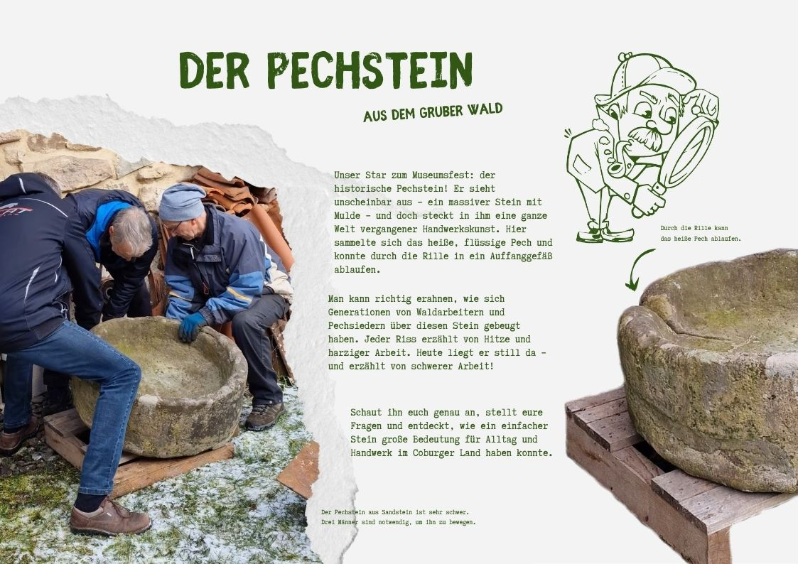 Die Landschaftsentdecker trafen sich in der Alten Schäferei: Im Fokus standen der Gruber Pechstein, die Idee einer Pechsiederei-Vorführung beim Museumsfest und neue Ausstellungsideen rund um Waldnutzung und Brunnen. Beim nächsten Treffen am 16. April um 17 Uhr werden weitere Ausstellungsthemen ausgewählt.