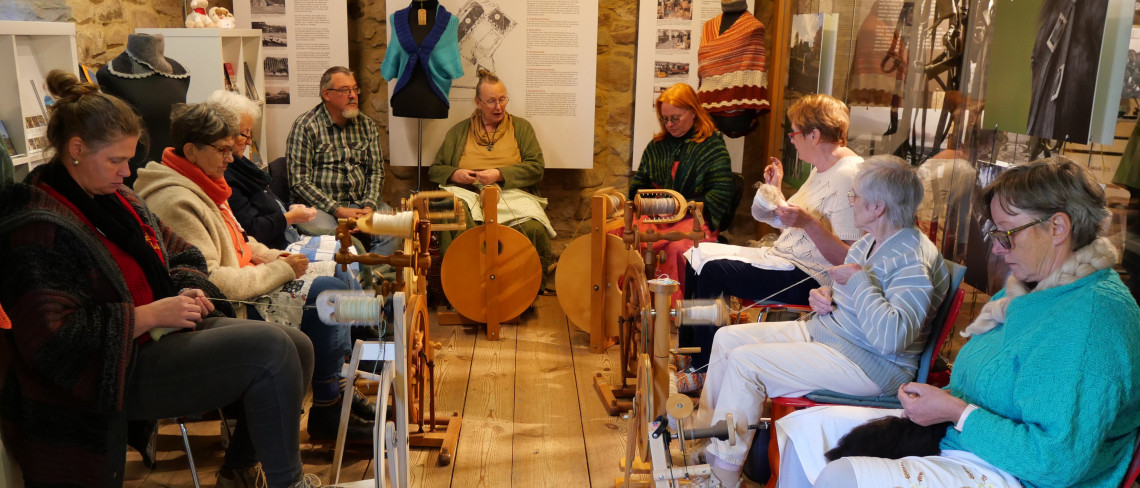 Die Spinngruppe des Museums Alte Schäferei Ahorn verbindet handwerkliches Können mit lebendiger Tradition. Hier treffen sich Menschen, die das alte Handwerk des Spinnens am Rad und von Hand pflegen und weitergeben möchten. Dabei geht es nicht nur um Technik, sondern vor allem um Gemeinschaft, Austausch und Freude daran, eine fast vergessene Kunst wieder lebendig werden zu lassen. Bei den Treffen und bei Vorführungen im Museum werden Fasern zu Garn gesponnen, und Besucher können hautnah miterleben, wie aus Rohwolle feine Fäden entstehen.