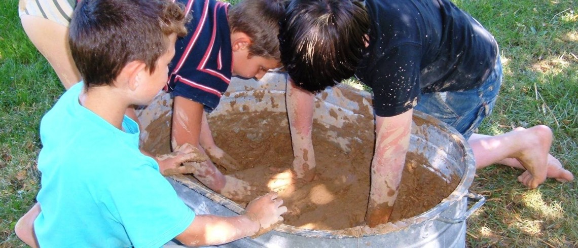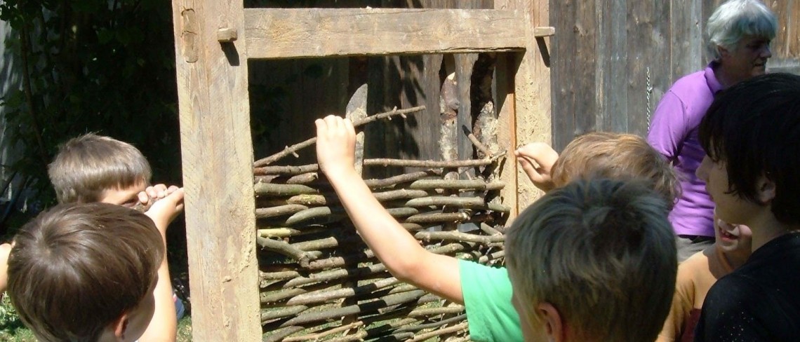 Lehmstampfen, Strohhäckseln, Weidenflechten, das Verstreichen von Figuren, Wänden oder Zäunen mit Stroh und Lehm und das Formen von Lehmsteinen führen in die Grundtechnik ein und vermitteln auf sinnliche Art neben sozialen und wirtschaftlichen Aspekten Umweltgesichtspunkte und Nachhaltigkeitsgedanken.